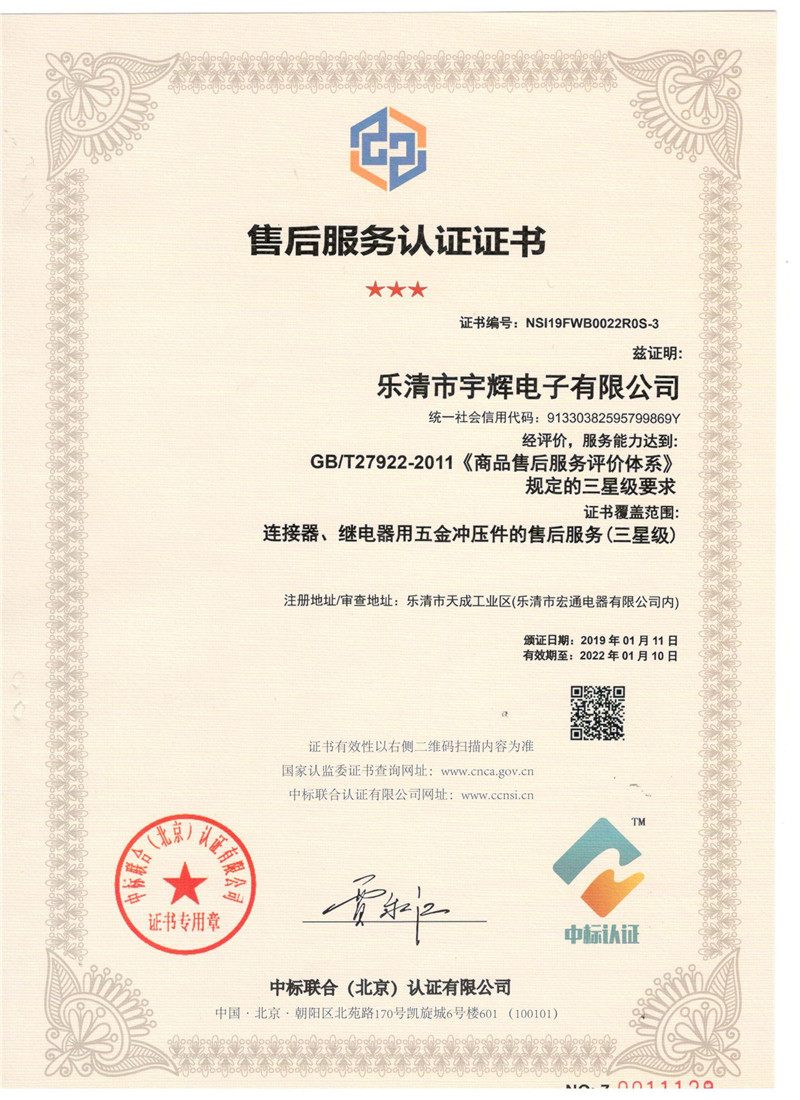 2012公司更名為:樂清市宇輝電子有限公司